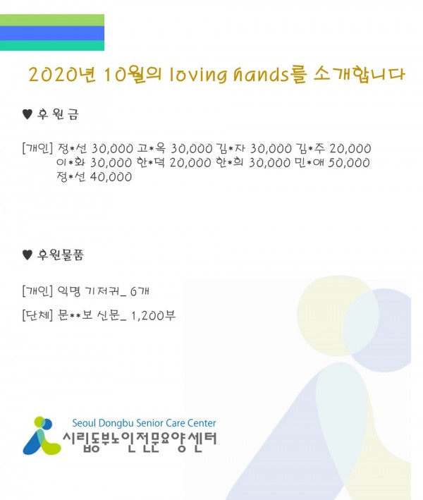 2020년 10월 loving hands!!를 소개합니다. 페이지 정보 작성자 최고관리자 작성일2020-11-05 09:18 조회12,961회 댓글0건 관련링크 이전글 다음글 목록 본문 어느덧 물씬 찬공기가 느껴지는 겨울의 계절이 왔습니다. 모두 감기와 코로나 조심하시고, 10월에도 많은 관심과 사랑의 손길을 베풀어 주셔서 감사합니다.11월에도 많은 관심과 사랑을 부탁 드립니다:) 댓글목록 등록된 댓글이 없습니다. 이전글 다음글 목록