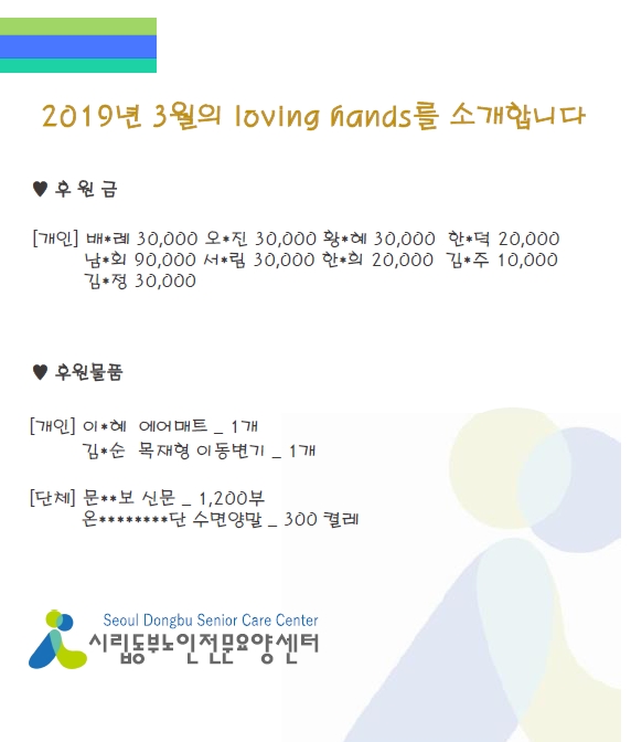 2019년 3월 loving hands!!를 소개합니다. 페이지 정보 작성자 최고관리자 작성일2019-04-02 11:15 조회14,469회 댓글0건 관련링크 이전글 다음글 목록 본문 3월에도 많은 관심과 사랑의 손길을 베풀어 주셔서 감사합니다. 댓글목록 등록된 댓글이 없습니다. 이전글 다음글 목록